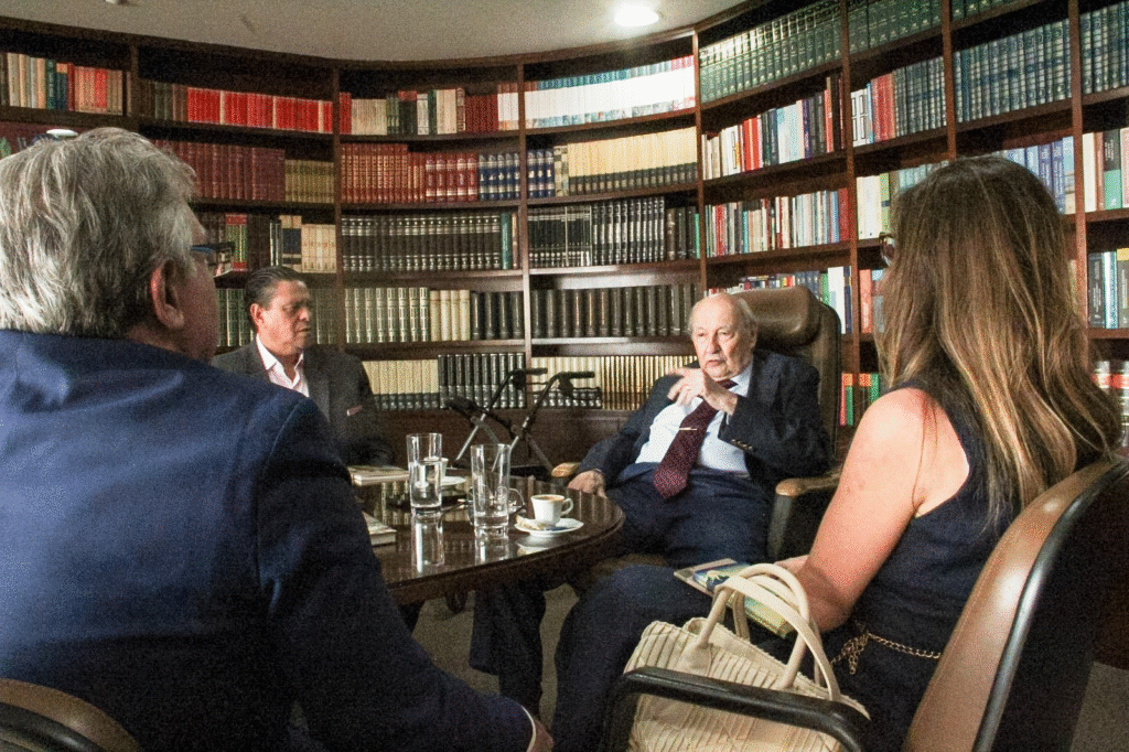 O Professor nos recebeu com a generosidade intelectual que o consagrou ao longo de décadas. Conversar com Ives Gandra Martins é entrar em contato com uma mente que alia rigor técnico, memória histórica e sabedoria humana. Em pouco mais de uma hora — que passou como poucos minutos — ele compartilhou histórias de sua vida acadêmica, de sua atuação institucional, de sua presença constante nos grandes debates nacionais e de seu compromisso permanente com a Constituição como eixo civilizatório do Estado brasileiro.