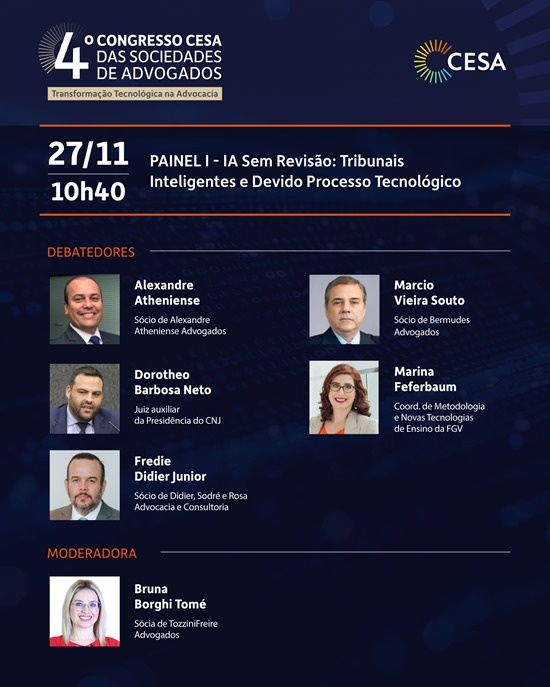 A advocacia brasileira se prepara para dois dias intensos de debates sobre o impacto das novas tecnologias no mundo jurídico. O 4º Congresso CESA das Sociedades de Advogados, que acontece nos dias 27 e 28 de novembro no Tivoli Mofarrej São Paulo Hotel, reunirá representantes dos tribunais superiores, dirigentes de escritórios, juristas, acadêmicos e diretores jurídicos de grandes empresas, como LATAM, Meta e General Mills. Com o tema “Transformação Tecnológica na Advocacia”, o evento se consolida como um dos principais fóruns nacionais dedicados à inovação, inteligência artificial, governança digital e aos desafios regulatórios do setor. O CESA — Centro de Estudos das Sociedades de Advogados — é presidido pelo advogado Gustavo André Muller Brigagão, referência no Direito empresarial e tributário, que destaca a relevância desta edição. “Estamos diante de mudanças que moldam o novo cenário jurídico brasileiro. O Congresso tem o propósito de qualificar o debate e aprimorar a compreensão sobre o papel da tecnologia no exercício da advocacia”, afirma.