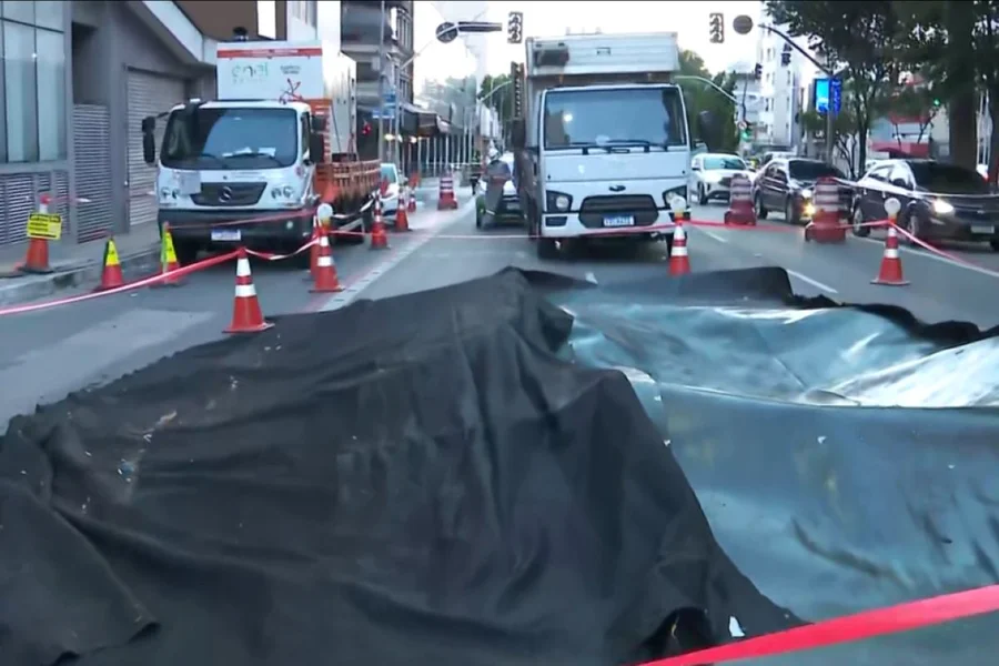 A Secretaria Municipal das Subprefeituras acompanha a ocorrência, enquanto a Companhia de Engenharia de Tráfego (CET) implantou faixa reversível na Avenida Angélica para mitigar os impactos viários. Não há prazo definido para a recomposição asfáltica.