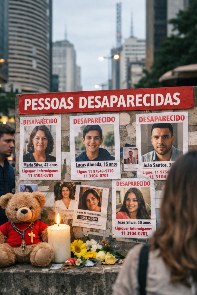 A estratégia inclui ainda a produção de cartazes com foto e dados básicos, divulgados em redes sociais e em locais de grande circulação, como as linhas Verde, Azul e Vermelha do Metrô, ampliando o alcance das buscas.