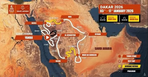 A organização do Dakar promete uma edição histórica. O diretor da prova, David Castera, desenhou uma rota mais equilibrada, variada e, ao mesmo tempo, brutal. A expectativa é de quebra de recordes e de uma das competições mais difíceis da história recente do rally. O prólogo acontece em Yanbu, no dia 3 de janeiro, com largada e chegada na mesma região, dando início oficial a uma maratona de areia, pedras, navegação e resistência.